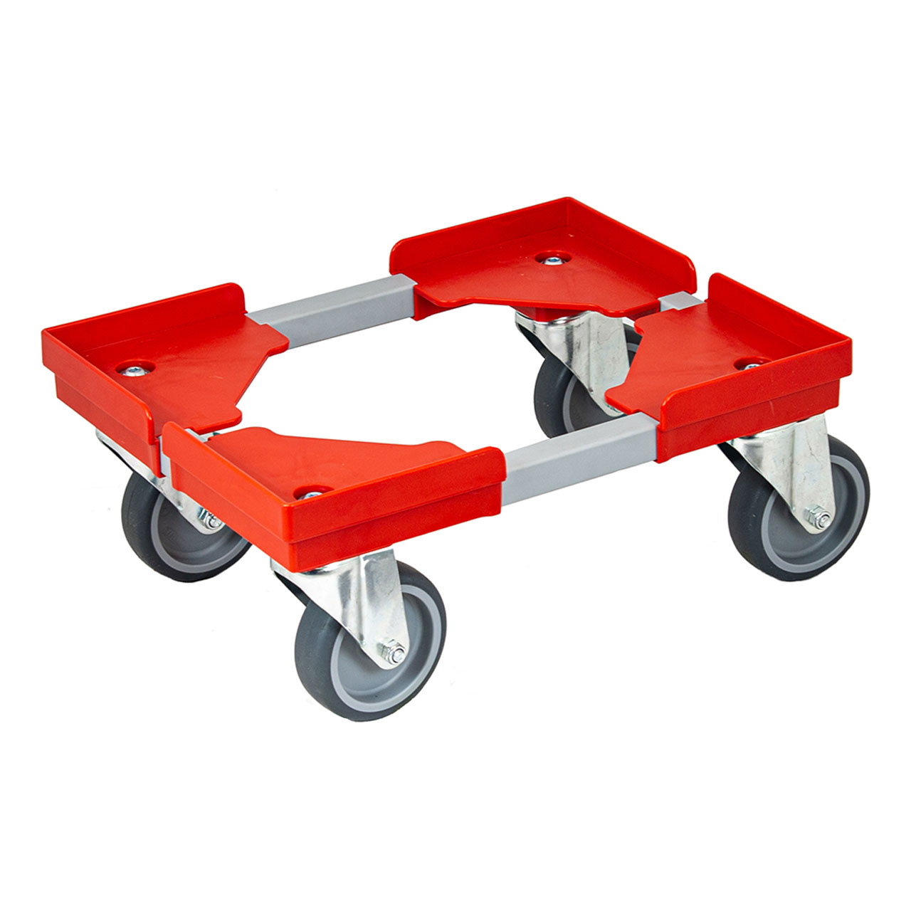 Onderstel heeft opstaande rand waardoor de bakken stabiel op het onderstal staan, ook geschikt voor nestbare bakken, voorzien van 4 PP wielen met thermoplastisch rubber loopvlak, gegalvaniseerde zwenkgaffels met dubbele kogeldraaikransen, dynamisch draagvermogen van 240 kg