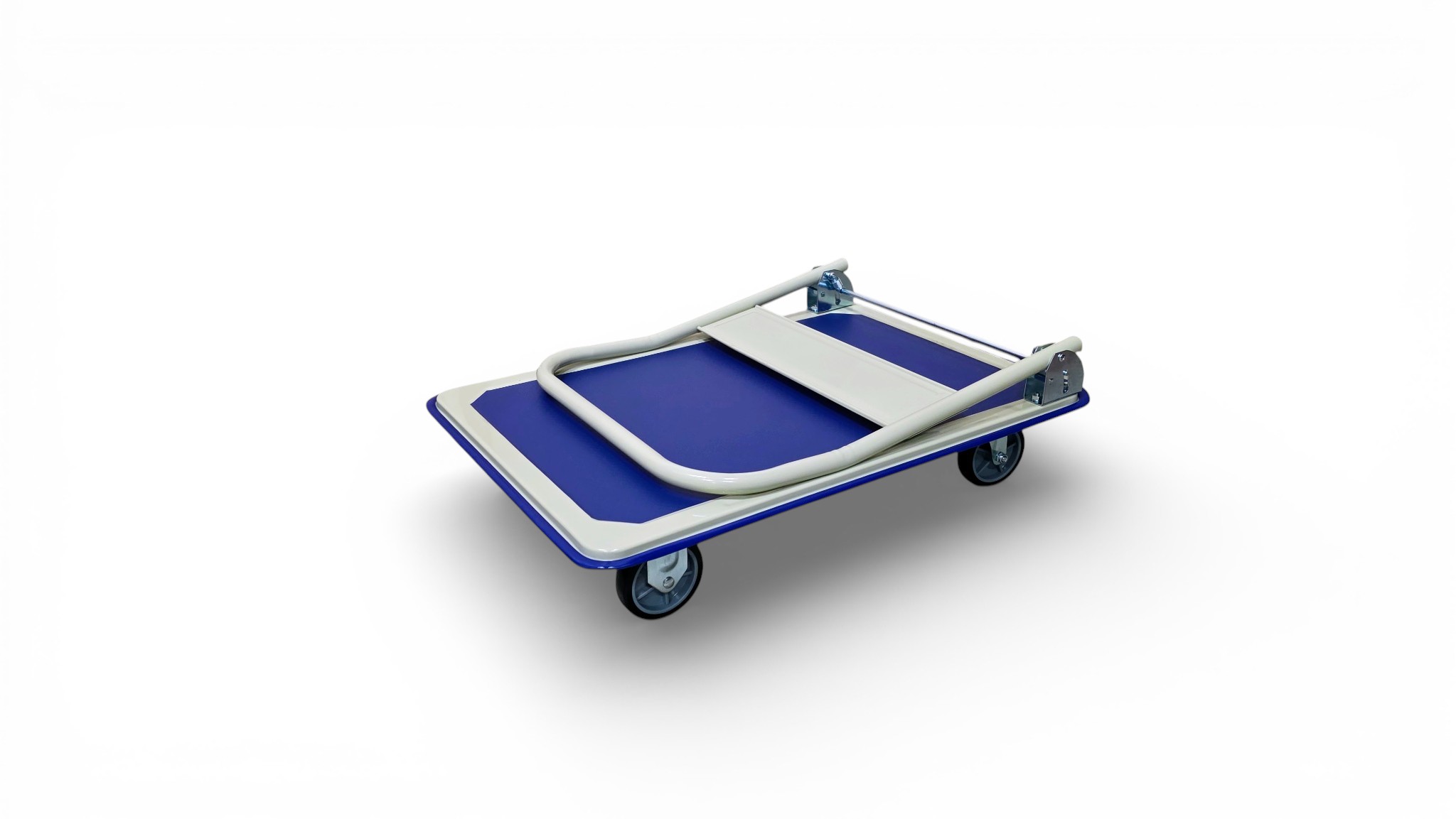 Tretal duwwagen 900x600mm (LxB) met neerklapbare duwbeugel. Laadvlak voorzien van antislip deklaag. Afwerking: gepoedercoat kleur grijs. De duwwagen wordt ongemonteerd en in een doos geleverd.