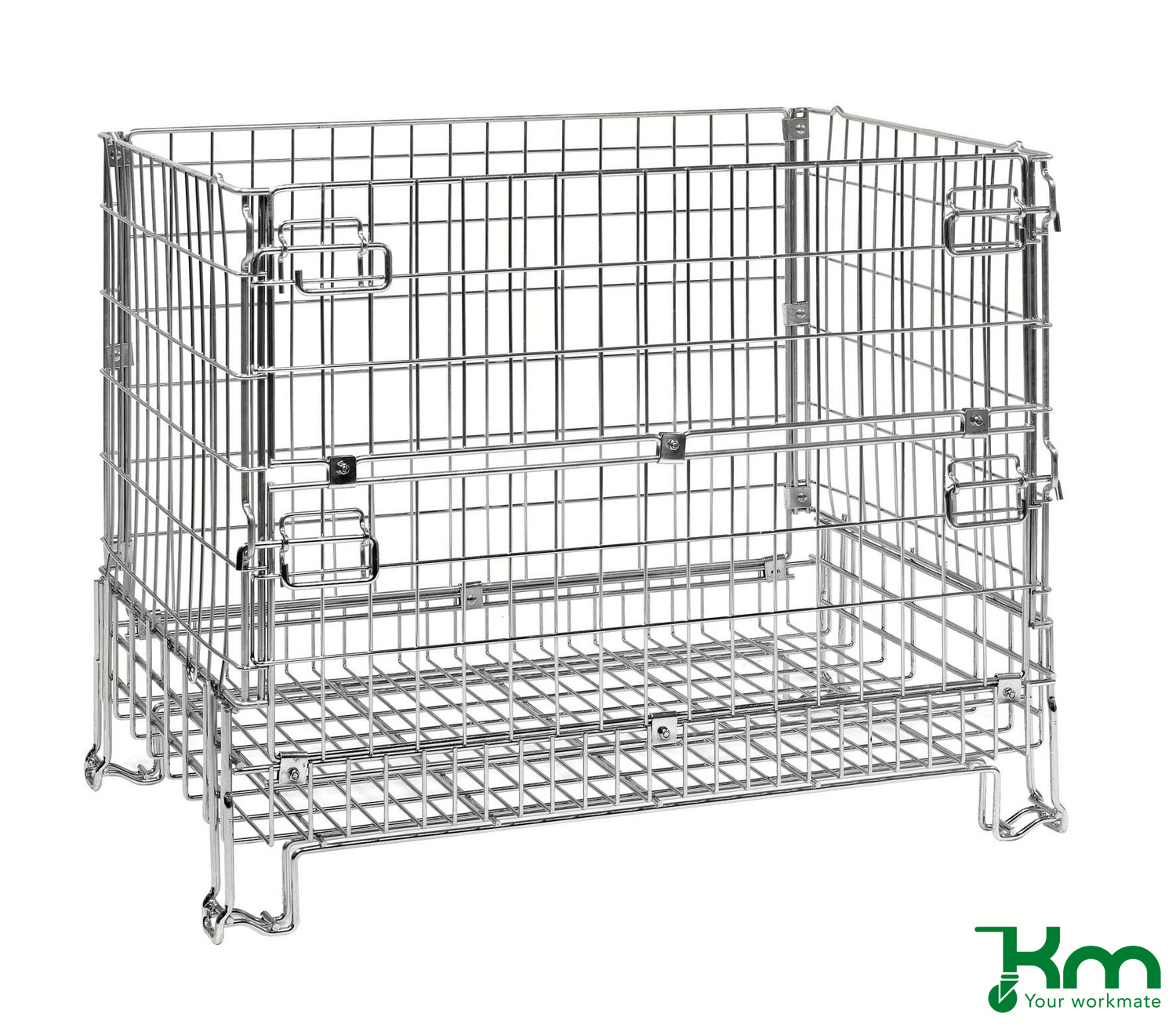 Elektrolytisch verzinkte gaasbox. De gaasboxen zijn uitgevoerd met een half neerklapbare wand aan de lange zijde. De gaasboxen hebben een draagvermogen van 1000 kg per stuk en kunnen worden gestapeld. De boxen zijn inklapbaar indien deze niet in gebruik zijn. Levering gaasboxen ongemonteerd.