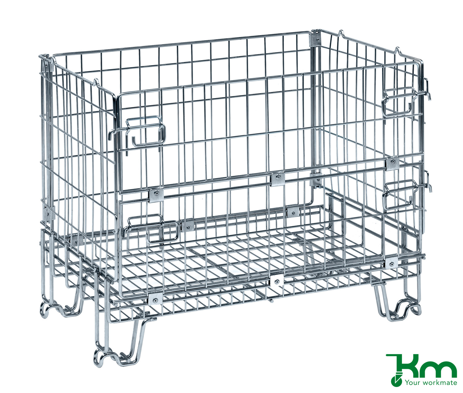 Elektrolytisch verzinkte gaasbox. De gaasboxen zijn uitgevoerd met een half neerklapbare wand aan de lange zijde. De gaasboxen hebben een draagvermogen van 300 kg per stuk en kunnen worden gestapeld. De boxen zijn inklapbaar indien deze niet in gebruik zijn. Levering gaasboxen ongemonteerd.