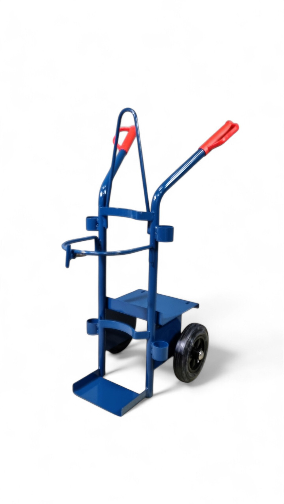 FRAMI gasflessenwagen t.b.v. TIG-apparatuur. Uitgevoerd met massief rubberen wielen