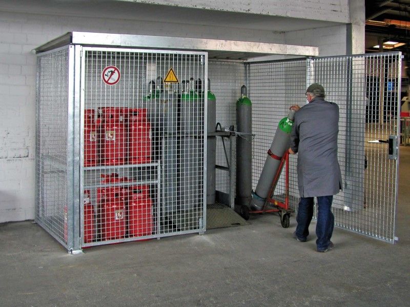 Tretal gasflessencontainers voor de buitenopslag van gasflessen volgens de TRGS 510 norm