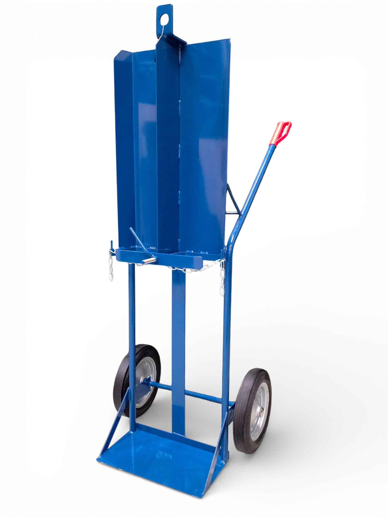 Gas- en zuurstofflessenwagen voor 2x 40/50 liter cilinders. Uitgevoerd met hijsoog. Levering inclusief hijskeur certificaat. Uitgevoerd met massief rubberen wielen.