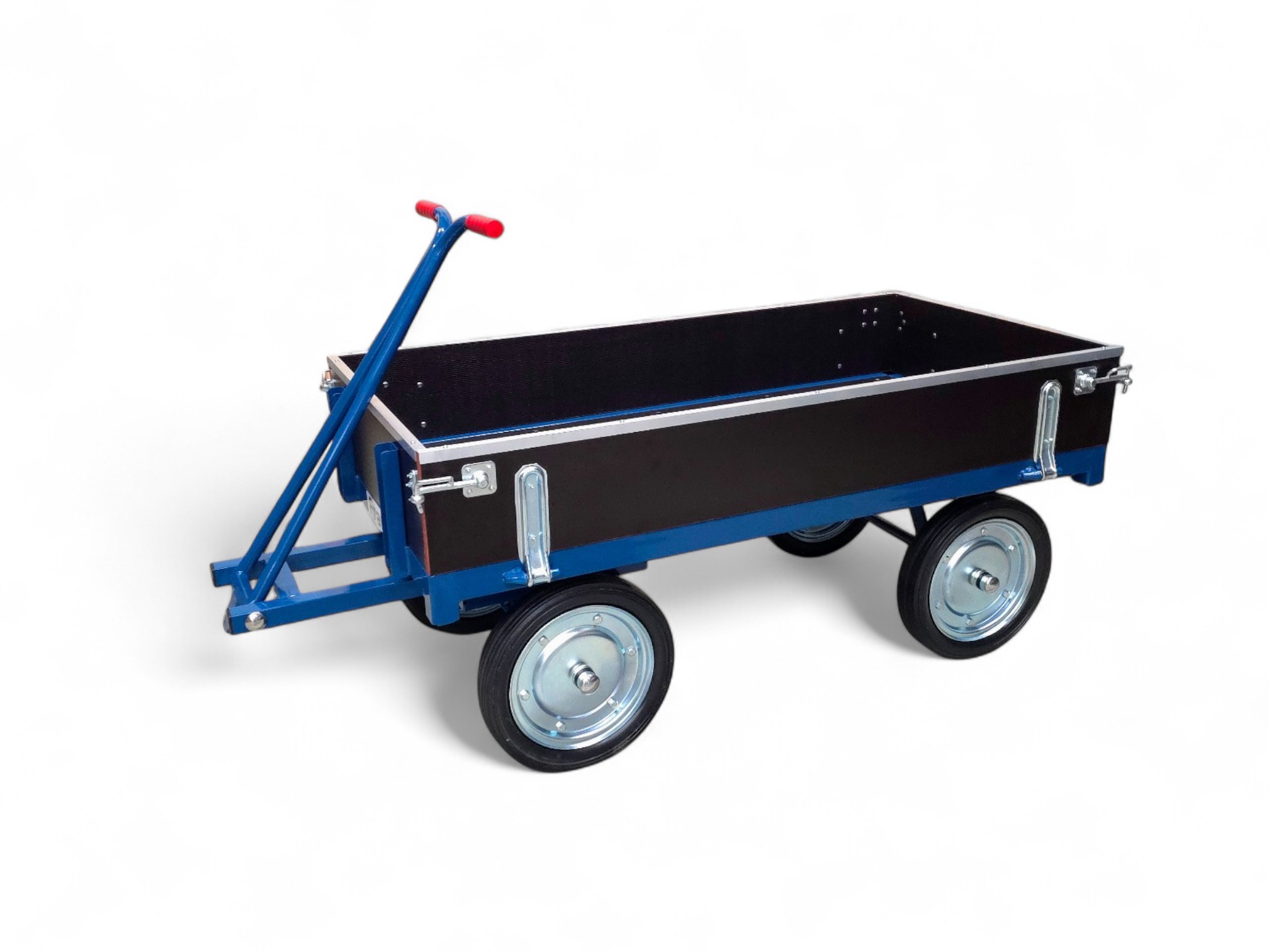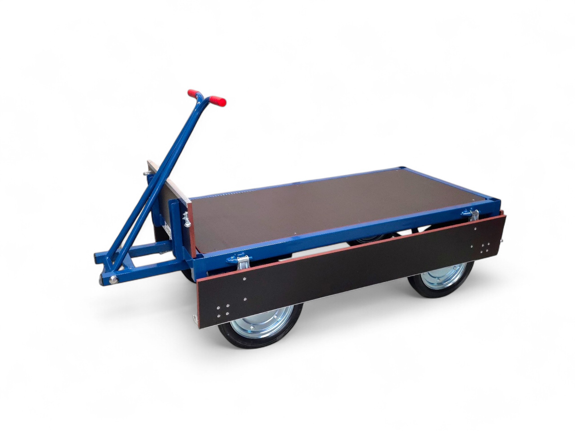 FRAMI handtrekwagens worden vervaardigd van robuuste buis- en profielstaal. De handtrekwagens zijn voorzien van wielen met massieve rubberbanden of luchtbandwielen. De wielen zijn uitgevoerd met rollagers. Het draaistel is uitgerust met een precisie-kogeldraaikrans voor optimale stabiliteit. De handtrekstang is voorzien van handgrepen met kunststof handvatten. De handtrekwagens met een draagvermogen van 1000 kg worden uitgerust met een meranti-laadvloer. De laadvloer wordt binnen het frame gemonteerd. FRAMI handtrekwagens worden afgewerkt met een poedercoating.