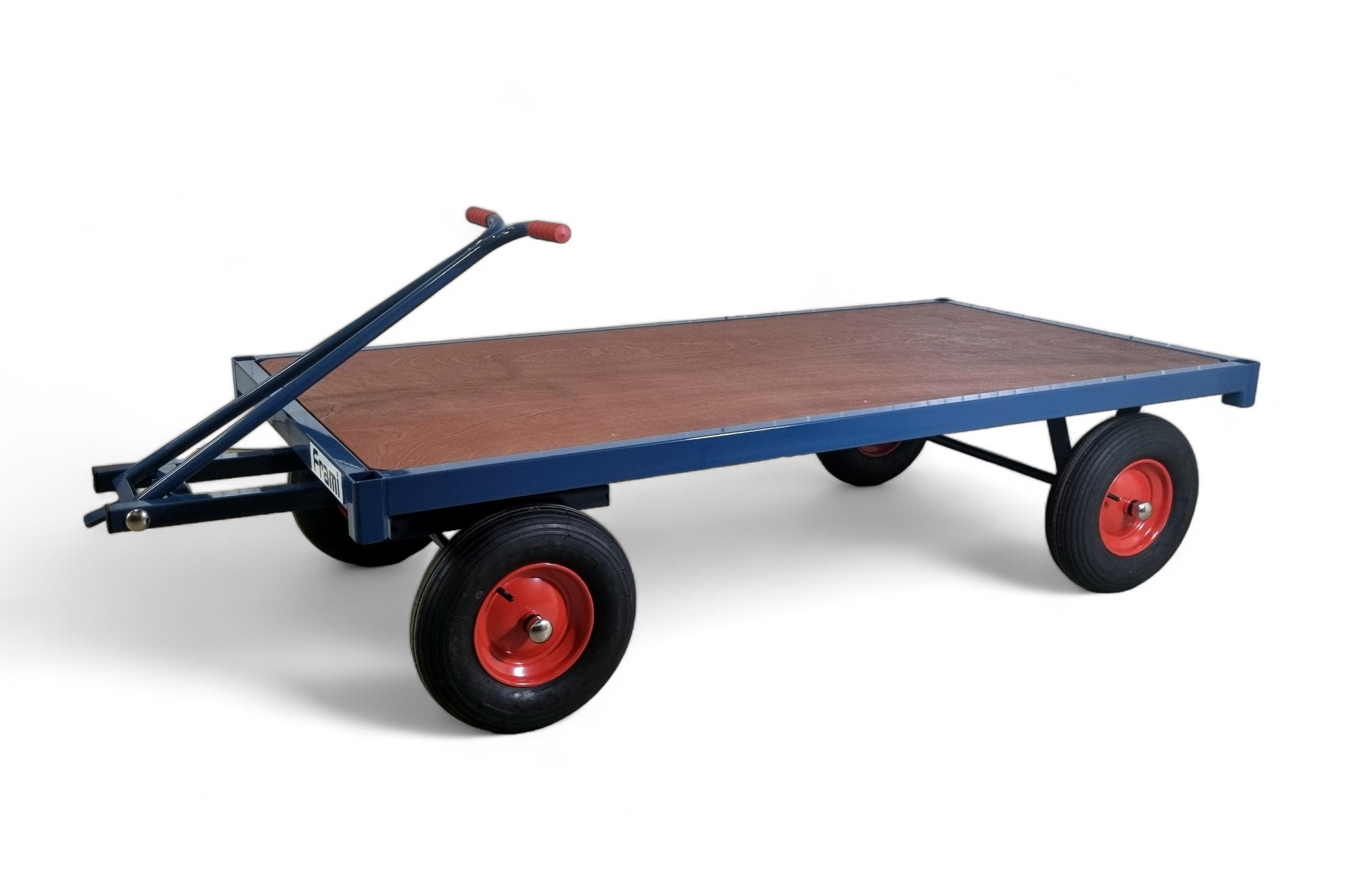 Frami handtrekwagens worden vervaardigd van robuuste buis en profielstaal. De handtrekwagens zijn voorzien van luchtbandwielen. De wielen zijn uitgevoerd met rollagers. Het draaistel is uitgevoerd met een precisie kogeldraaikrans voor optimale stabiliteit. De handtrekstang is voorzien van handgrepen met kunststof handvatten. De handtrekwagens met een draagvermogen van 1000 kg worden voorzien van een meranti laadvloer. De laadvloer wordt binnen het frame gemonteerd. Frami handtrekwagens worden voorzien van een poedercoating