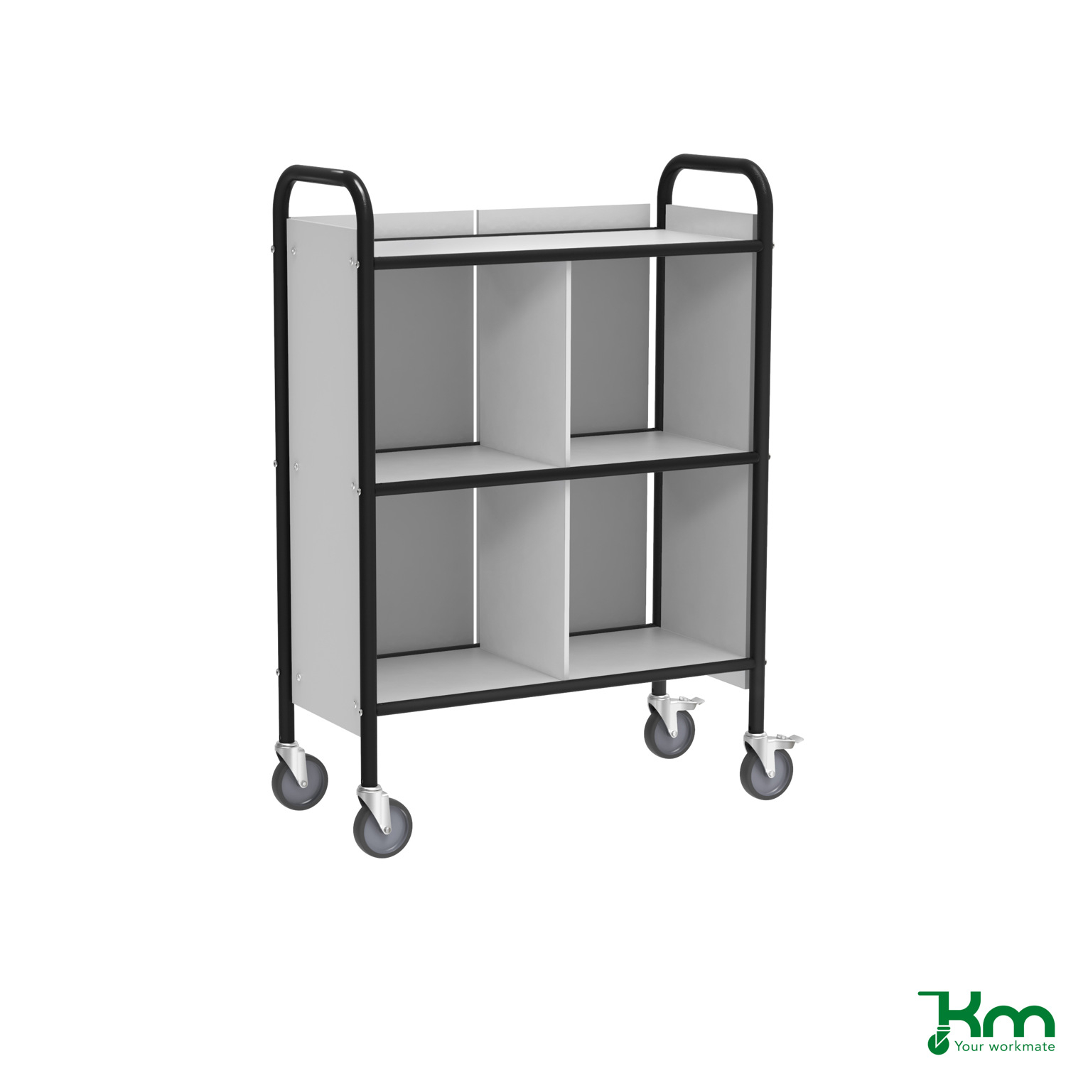 Kongamek archieftrolley 780x345x1115 (LxBxH) KM158-S, draagvermogen 150 kg. Uitvoerd met 3 niveaus. Poedercoating zwart.