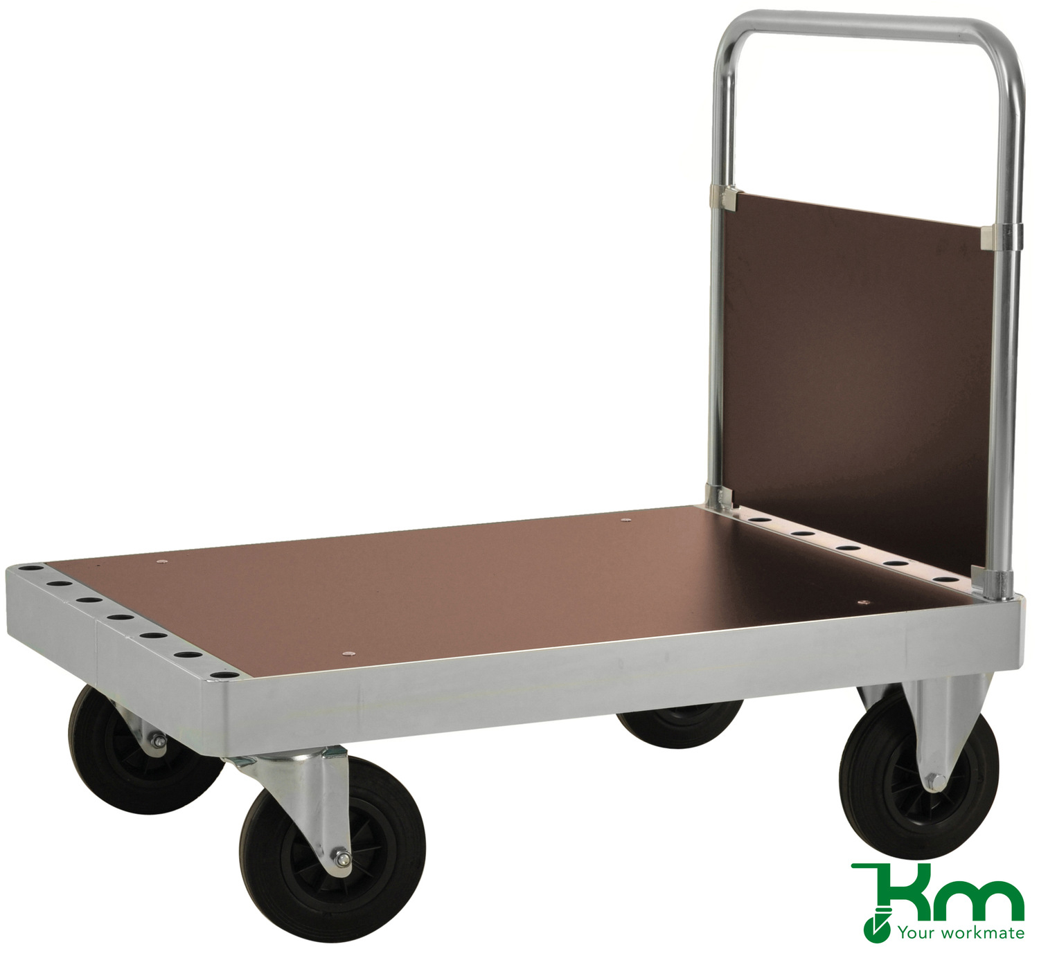 Staalverzinkte makkelijk manouvrerende kopwandwagen. Platformafmeting: 900x600mm. Draagvermogen 800 kg! Laadvloer en kopwanden van MDF. Uitgevoerd met 2 zwenkwielen met rem en 2 bokwielen diameter 200 mm, massief rubber. Wielenset en opbouw wordt ongemonteerd meegeleverd. Afwerking: verzinkt
