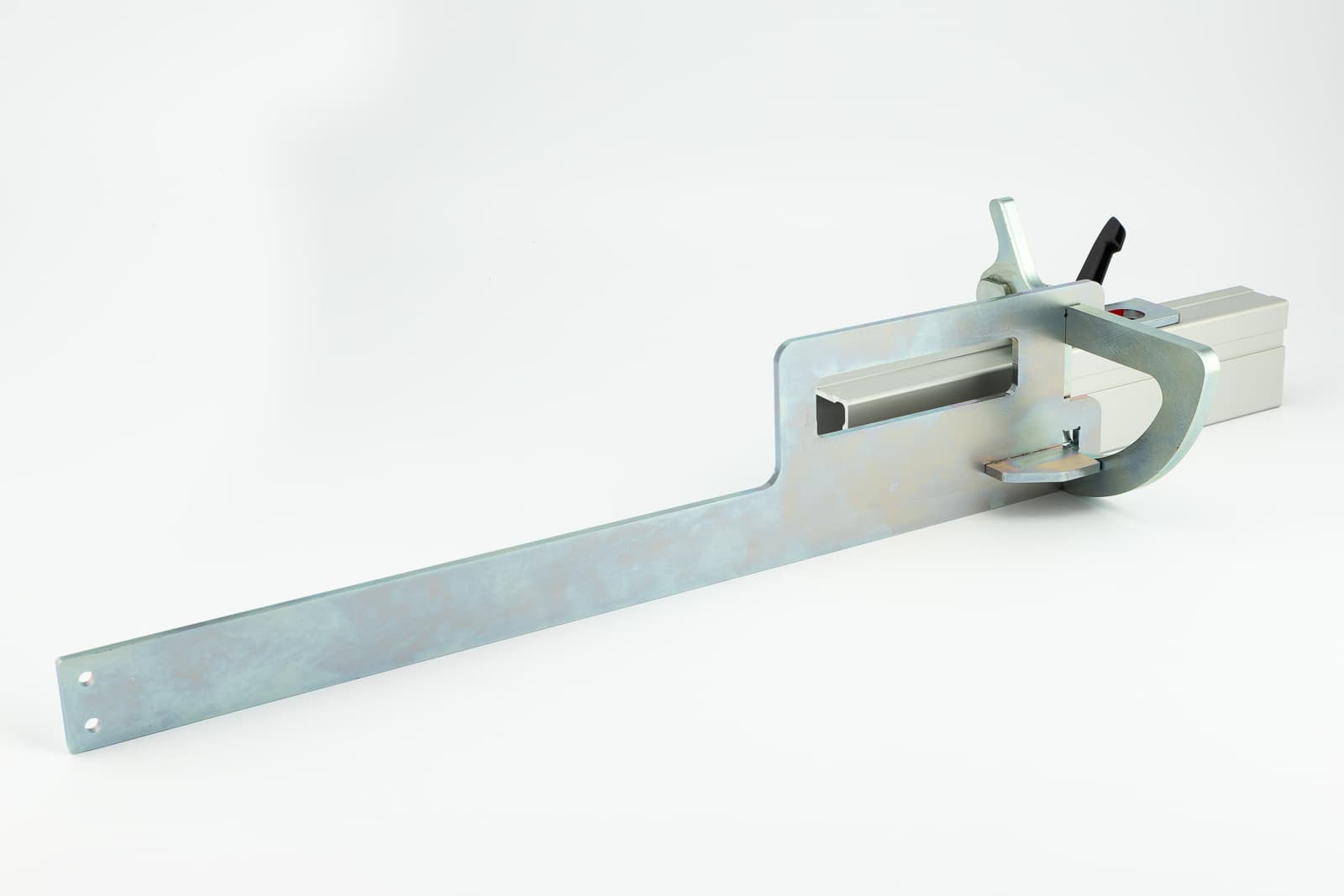 Het verlengstuk is toepasbaar voor de PA aanslag. Het aanslagpunt voor het te bewerken product wordt dan 500 mm verplaatst waardoor het mogelijk is om tussen de klembekken van een zaagmachine te kunnen afkorten op de gewenste lengte. De maatinstelling is dan productlengte + 500 mm. Er dient een keuze gemaakt te worden of het verlengstuk bij een linkse of rechtse aanslag wordt toegepast.