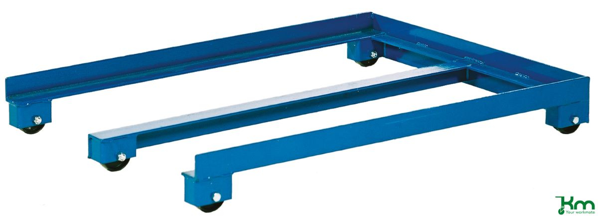 Manuele palletwagen, geschikt voor europallets 1200×800 mm. De palletwagen is bedoeld voor het eenvoudig verplaatsen en het in- en/of uitrijden van een pallet uit de onderste rij van een palletstelling. Draagvermogen 1000 kg