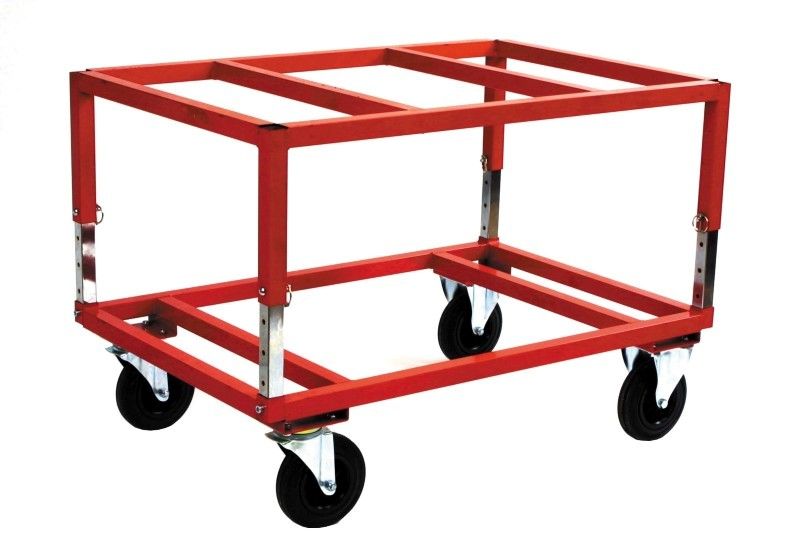 Palletonderwagen 1200×800 mm, in hoogte verstelbaar model. Maximale hoogte 830 mm, rood
