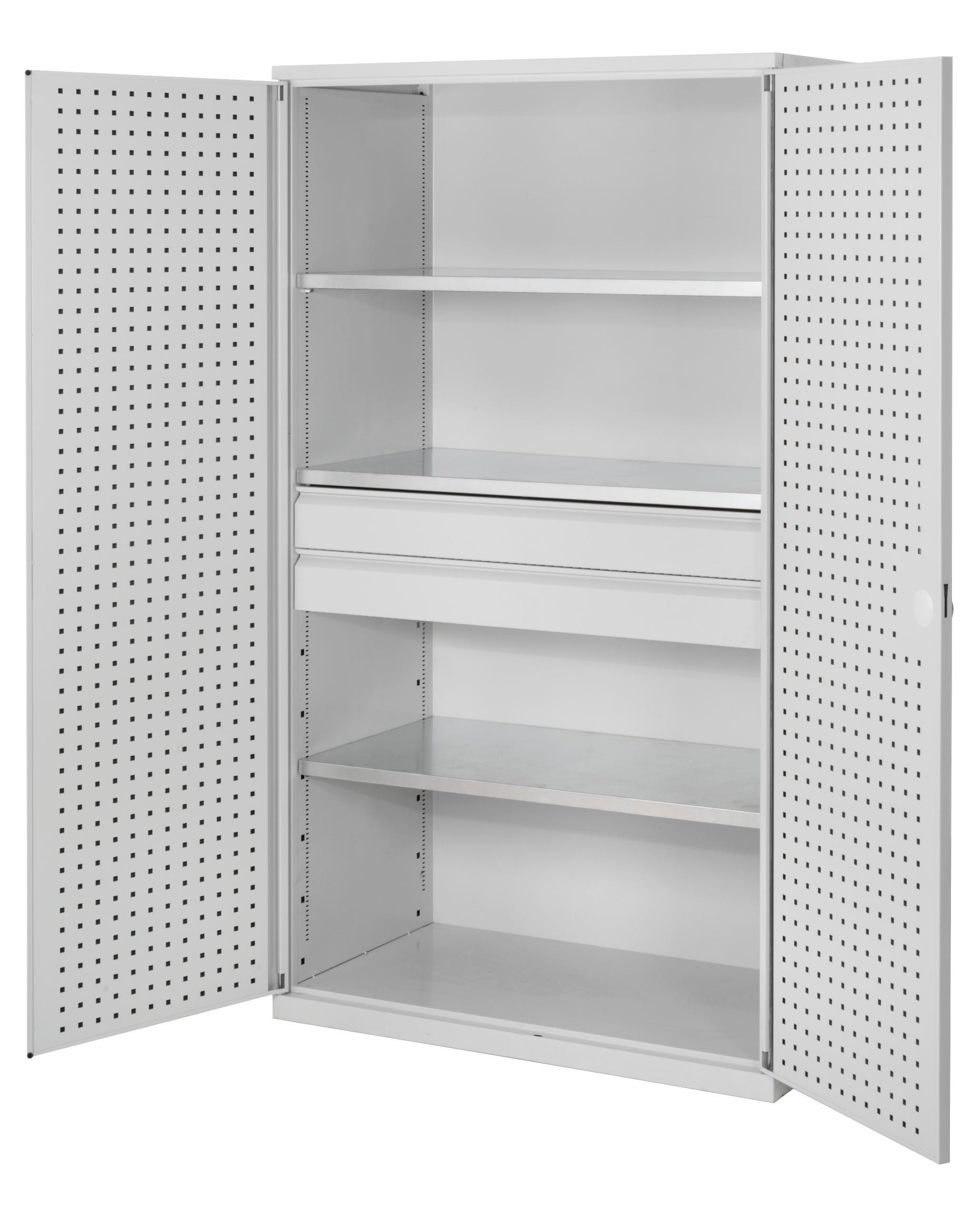 ®RasterPlan groot volume gereedschapskast uitgevoerd met perfo deuren, 2 laden en 3 legborden