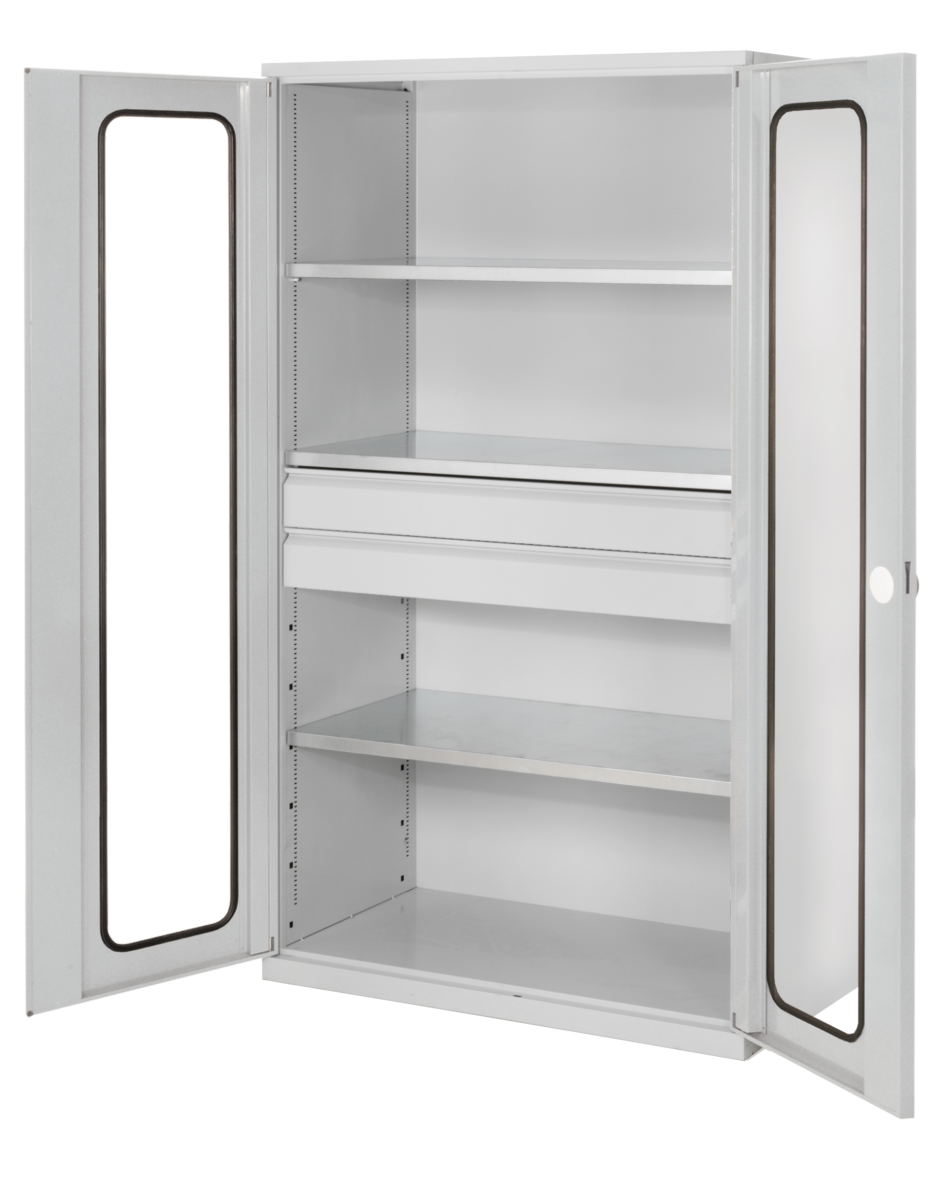 ®RasterPlan groot volume gereedschapskast uitgevoerd met zichtvenster deuren, 2 laden en 3 legborden