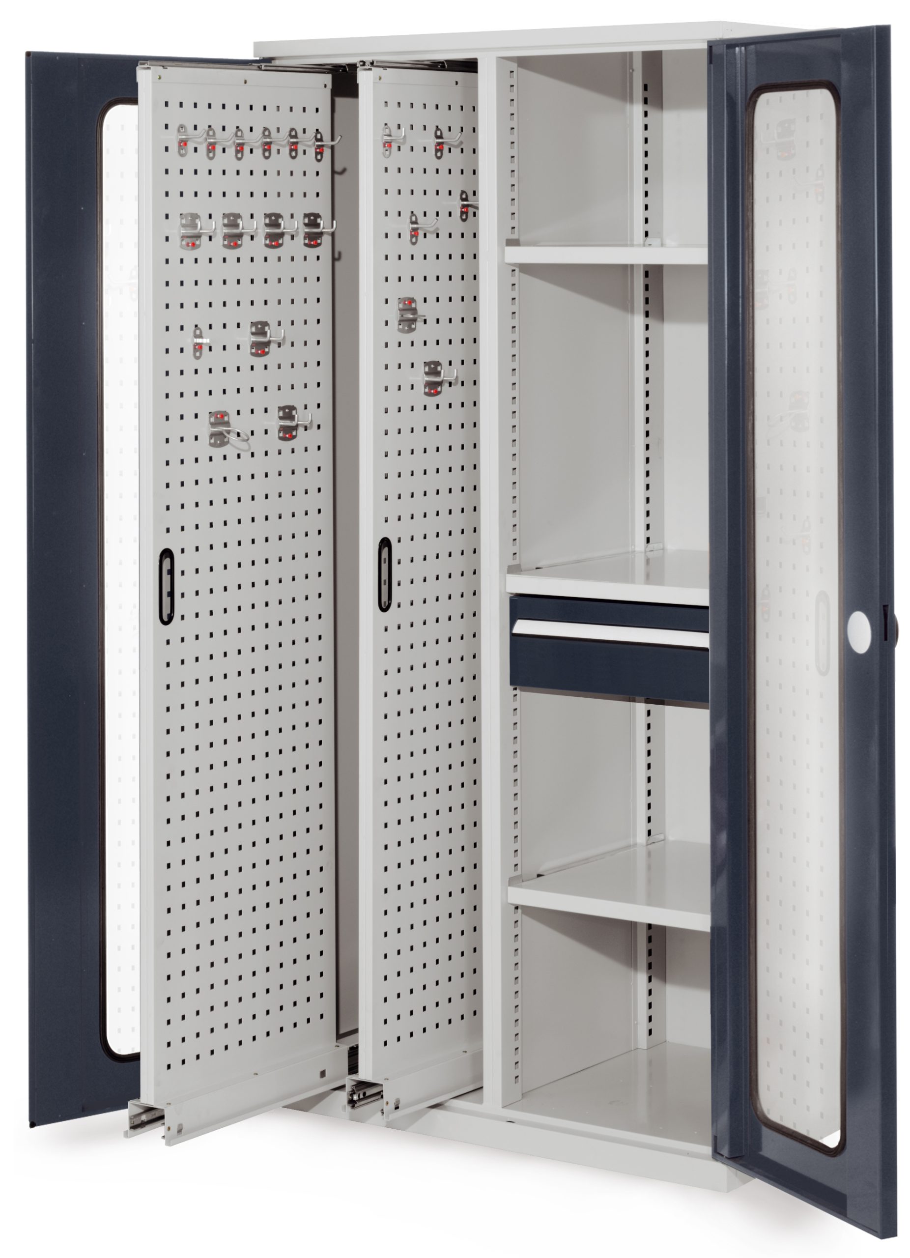 ®RasterPlan kasten met uittrekbare perfopanelen en zichtvensterdeuren, model 82 antraciet