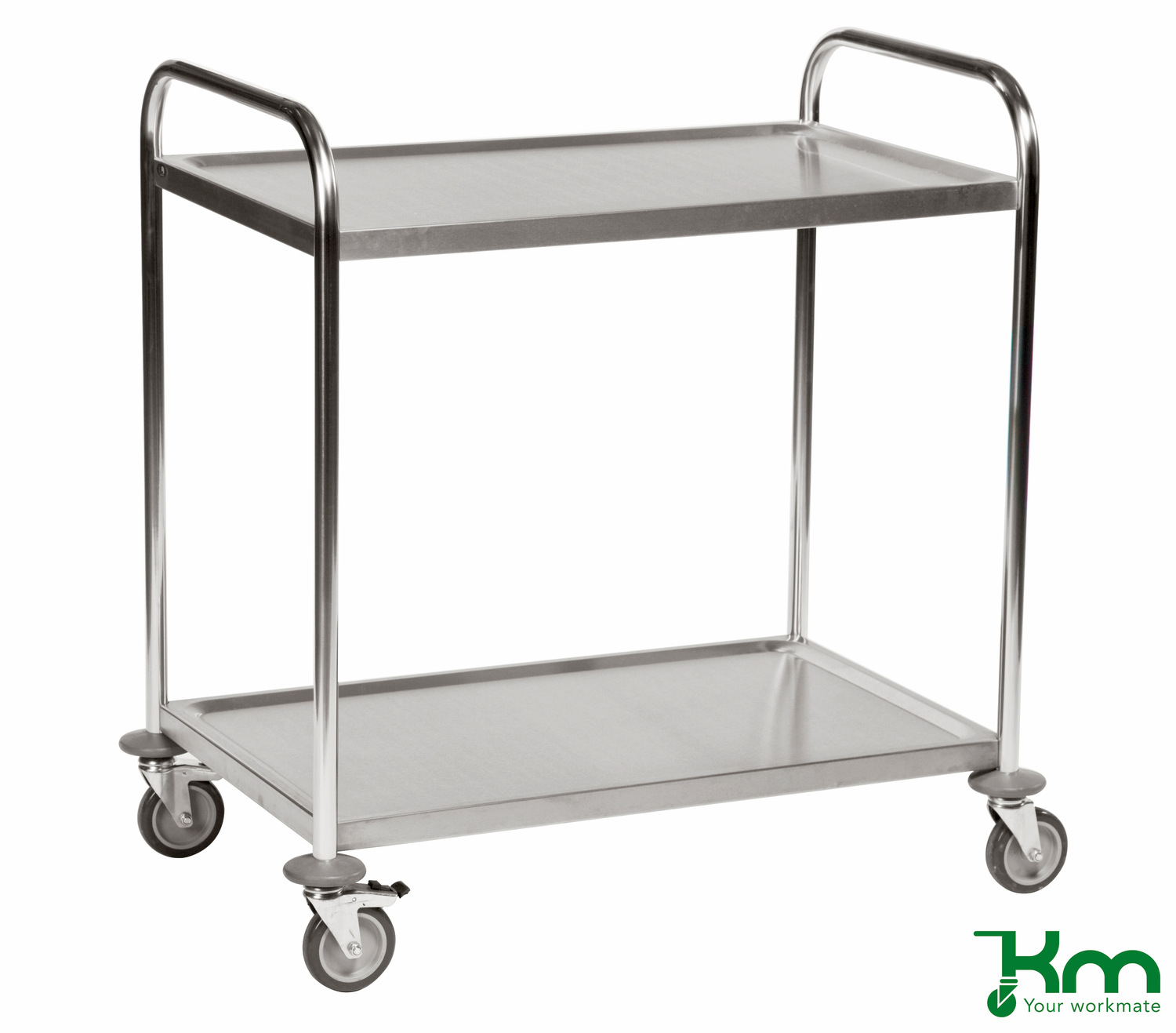 RVS (18/0) C2 serveerwagens zijn leverbaar in verschillende uitvoeringen. De serveerwagens worden door KM – your workmate geleverd in verschillende corrosiviteitscategorieën zoals gedefinieerd in ISO 9223. Deze serveerwagens omvatten alles van de economische KM 18/0-modellen (C2) tot het meer corrosiebestendige KM 18/8-assortiment en onze volledig gelaste serveerwagens (C3), die zijn gebouwd om te voldoen aan de strenge eisen van professionele omgevingen zoals restaurantkeukens, ziekenhuizen en de voedingsindustrie. Alle productie van de roestvrijstalen wagens wordt uitgevoerd in gescheiden productieprocessen. Door gebruik te maken van geavanceerde lastechnologie en kwaliteitszekere materialen, zorgen wij ervoor dat onze serveerwagens voldoen aan alle eisen met betrekking tot functionaliteit, duurzaamheid en hygiëne. De serveerwagens zijn uitgevoerd met 4 grijze rubberband zwenkwielen waarvan 2 met rem, Ø100 mm. Draagvermogen 100kg of 150 kg, afhankelijk van de uitvoering. Levering serveerwagens ongemonteerd.