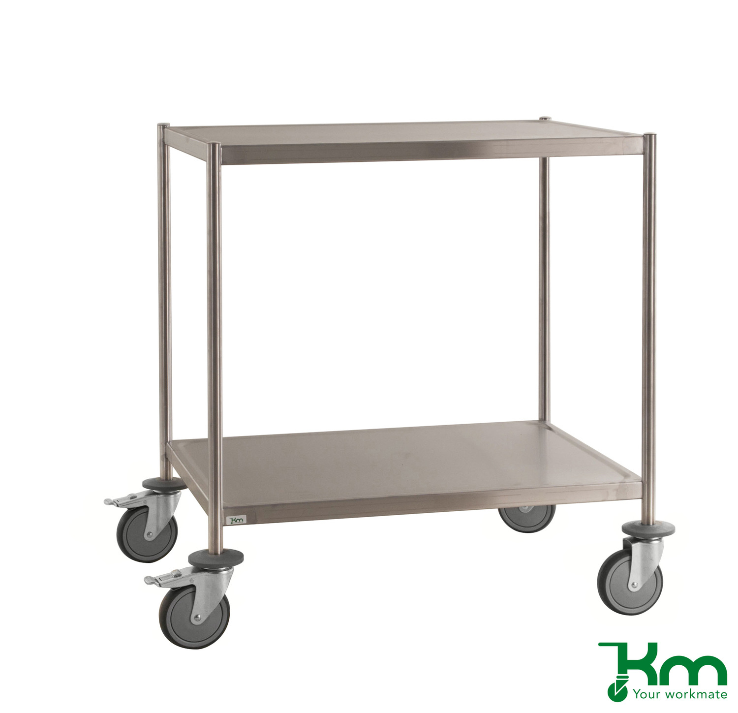 RVS (18/8) C3 serveerwagens zijn leverbaar in verschillende uitvoeringen. De serveerwagens worden door KM – your workmate geleverd in verschillende corrosiviteitscategorieën zoals gedefinieerd in ISO 9223. Deze serveerwagens omvatten alles van de economische KM 18/0-modellen (C2) tot het meer corrosiebestendige KM 18/8-assortiment en onze volledig gelaste serveerwagens (C3), die zijn gebouwd om te voldoen aan de strenge eisen van professionele omgevingen zoals restaurantkeukens, ziekenhuizen en de voedingsindustrie. Alle productie van de roestvrijstalen wagens wordt uitgevoerd in gescheiden productieprocessen. Door gebruik te maken van geavanceerde lastechnologie en kwaliteitszekere materialen, zorgen wij ervoor dat onze serveerwagens voldoen aan alle eisen met betrekking tot functionaliteit, duurzaamheid en hygiëne. De serveerwagens zijn uitgevoerd met 4 grijze rubberband zwenkwielen waarvan 2 met rem, Ø125 mm. Draagvermogen 200 kg.