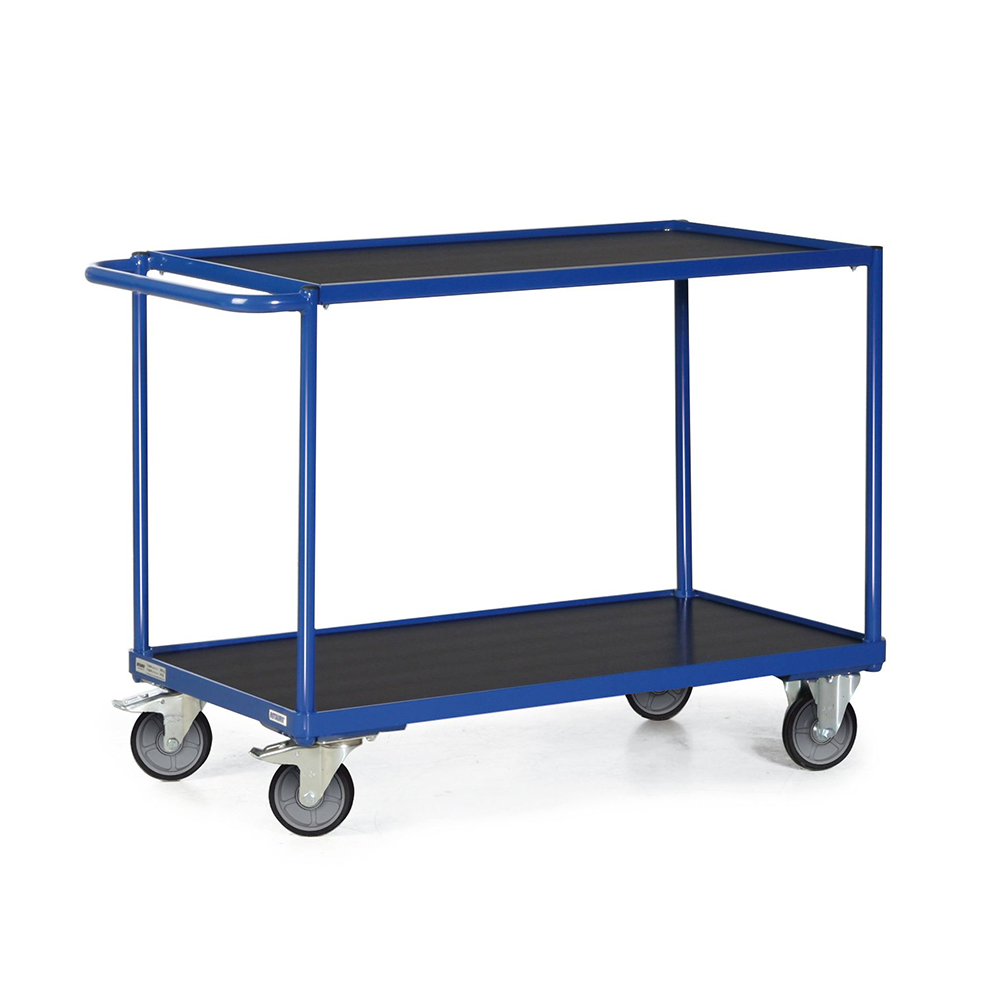 Tafelwagen met 2 legborden en horizontale duwbeugel, gentiaanblauw 850x500mm