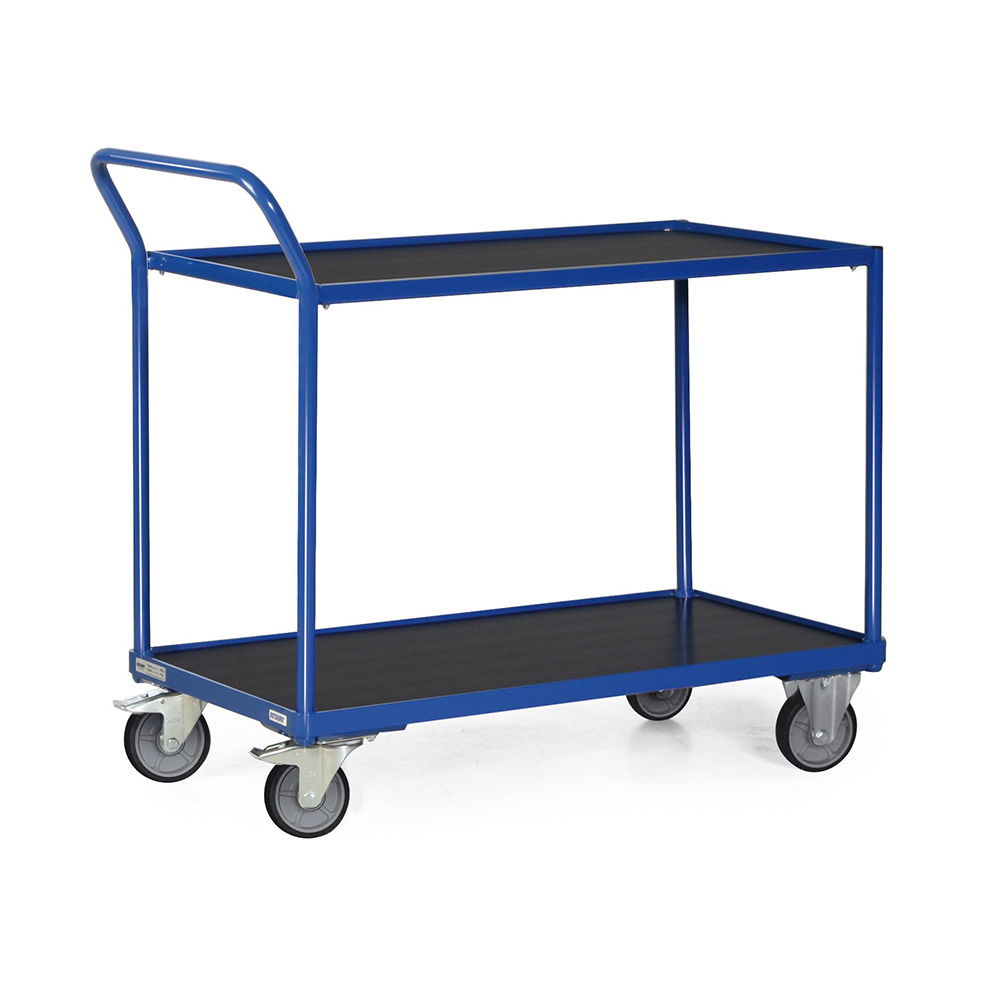 Tafelwagen met 2 legborden en schuine duwbeugel, gentiaanblauw 850x500mm