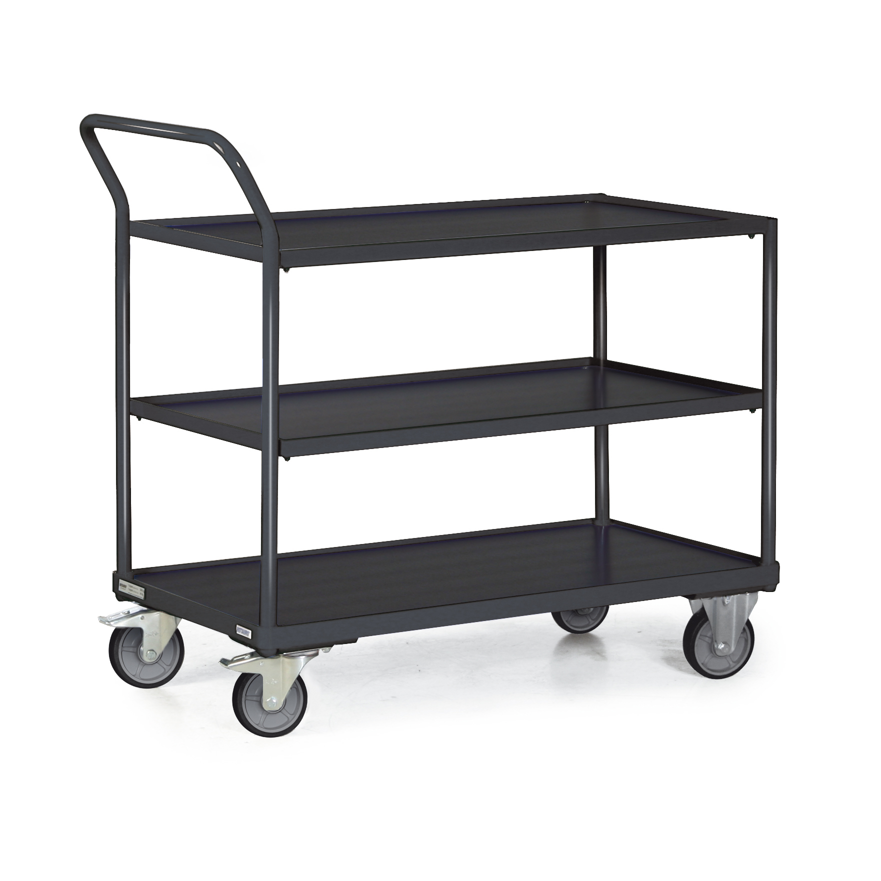 Tafelwagen met 3 legborden en schuine duwbeugel, antraciet 1000x600mm