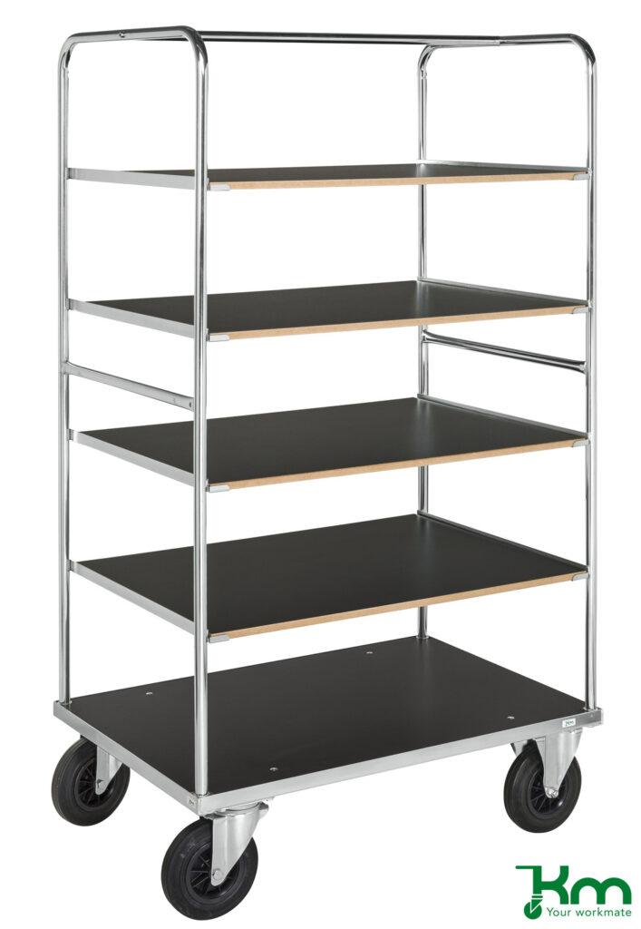 Onze etagewagens zijn zeer handig in gebruik. Moet je even snel iets uit het magazijn ophalen maar kun je het niet in een keer dragen? Geen probleem! Neem de etagewagen mee en je kunt alles gemakkelijk tegelijk met je meenemen. Dit scheelt jou onnodig extra loopwerk en onnodig tilwerk. Moet je verderop in het kantoor iets repareren maar weet je niet zeker welk gereedschap je allemaal nodig hebt? Neem het voor de zekerheid gewoon allemaal mee! Zo’n etagewagen kun je met het grootste gemak helemaal volladen met gereedschap en naar de andere kant van het pand verplaatsen. Soms kan het ook handig zijn om een wagen standaard met gereedschap en andere benodigdheden klaar te hebben staan. Wanneer je de spullen nodig hebt, staat alles al klaar en hoef je alleen maar de etagewagen te verrijden. Zo heb je altijd alles binnen handbereik!