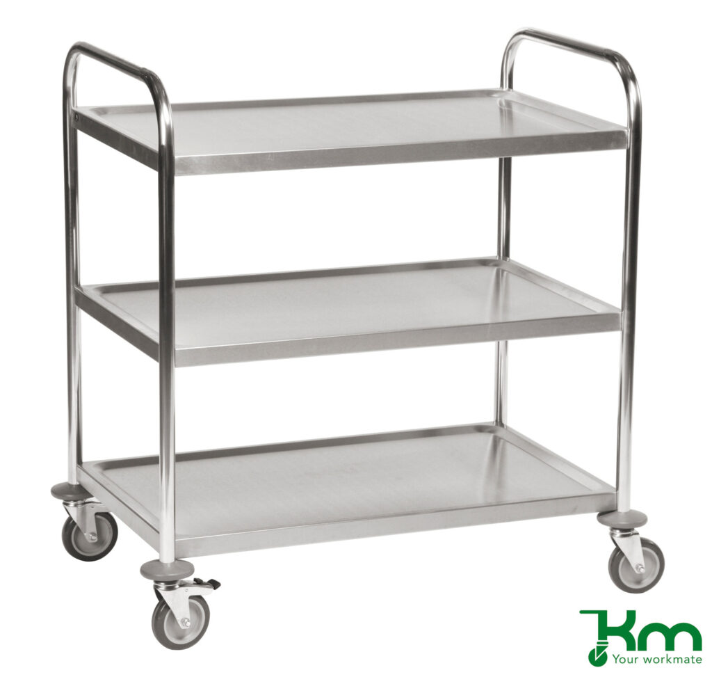 Het transporteren van goederen met een serveerwagen is belangrijk binnen ziekenhuizen, restaurants, laboratoria en binnen zowel magazijn- als fabrieksomgevingen. De serveerwagen wordt gebruikt om items efficiënt van de ene plaats naar de andere te verplaatsen en bespaart je tijd en moeite. Tretal Material Handling levert verschillende soorten serveerwagens om aan jouw persoonlijke behoeften te voldoen. Bij de aanschaf van een serveerwagen is het formaat het belangrijkst. Ook is het belangrijk te weten hoe breed de gangen in het magazijn zijn. Zo weet je zeker dat de serveerwagen die je koopt perfect door het magazijn past. Als je zeer smalle gangen of bochten hebt, raden wij aan om op onze website te kijken naar een geschikte serveerwagen met het juiste formaat.