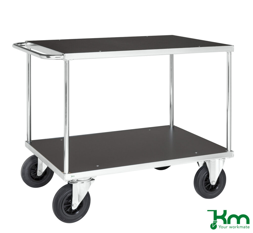 Wij kunnen vrijwel ieder bedrijf het werken met tafelwagens aanraden. Deze compacte maar sterke wagens zijn namelijk overal in te zetten. Of je nu een groot of klein magazijn hebt, voor deze verrijdbare tafels is er altijd ruimte. Door de hoge wendbaarheid kun je onze tafelwagens gemakkelijk door je bedrijf heen verplaatsen. Zo kun je een tafelwagen bijvoorbeeld gebruiken als een soort mobiele werkbank. Laad er de benodigde materialen en gereedschappen op en je kunt deze verrijdbare werkbank overal in je bedrijf gemakkelijk inzetten.