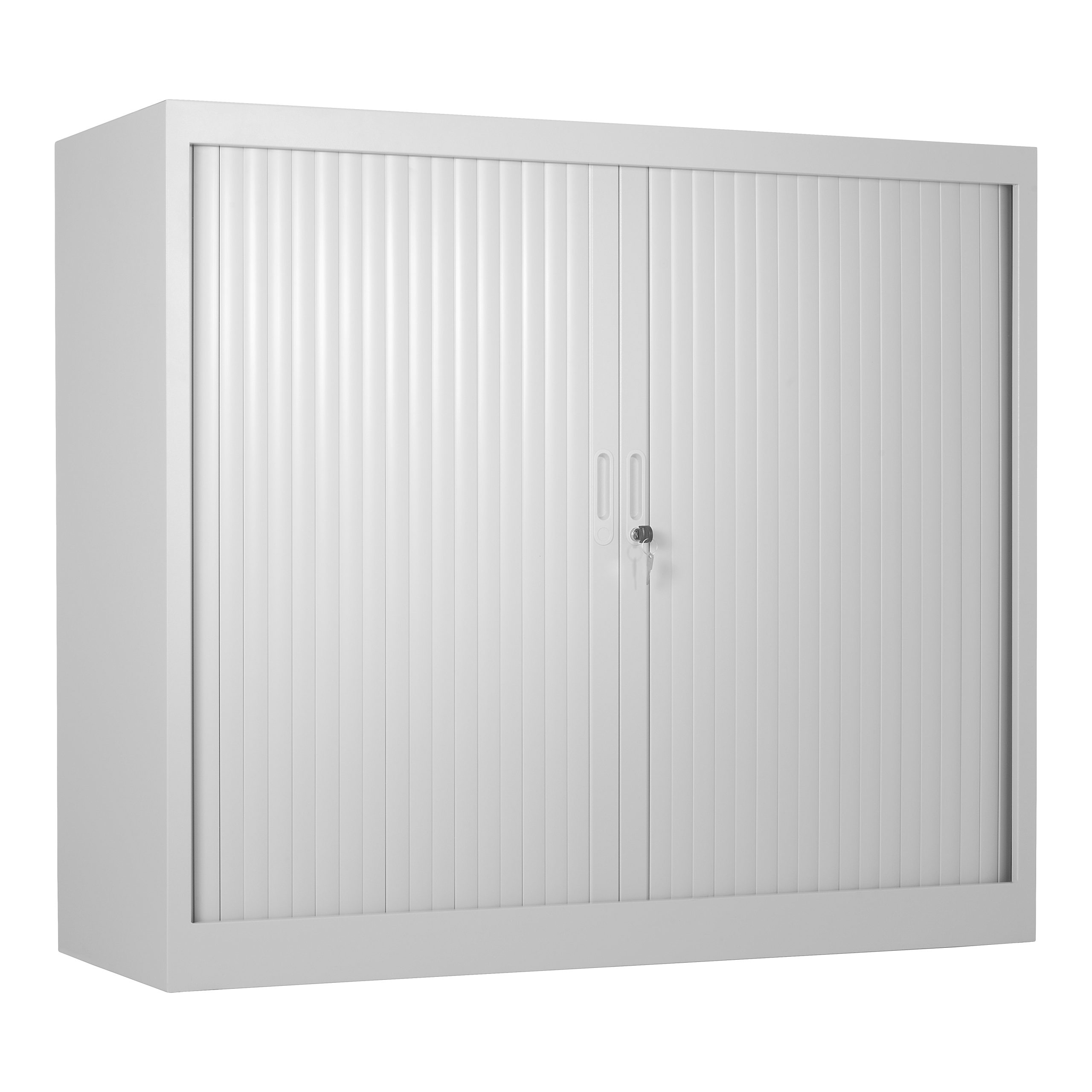 Tretal roldeurkast 105x120x45 cm (HxBxD), 70136-CHS1051207035. Uitgevoerd in kleur: Grijs RAL7035. Volledig gelaste stalen constructie met vlamdovende PVC roldeuren met metalen eindlamel, deuren kunnen 100% open en de deur is uitgevoerd met Cilinderslot inclusief 2 sleutels. Uitgevoerd met 2 in hoogte verstelbare legborden (per 35 mm te verstellen). Draagvermogen per legbord: 50 kg bij gelijkmatige belasting. De roldeurkast is waterpas te stellen van binnenuit.
