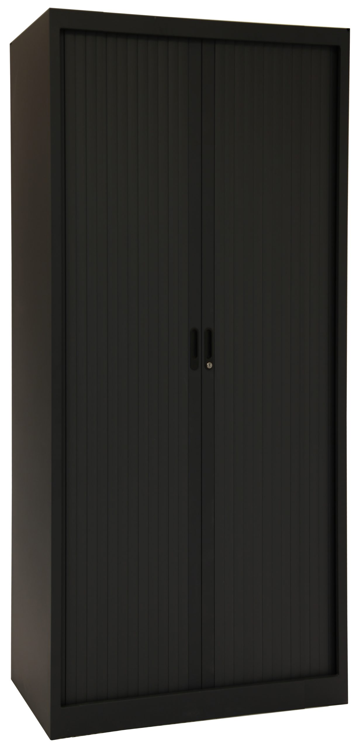 Tretal roldeurkast 195x100x45 cm (HxBxD), 70136-CHS1951009005. Uitgevoerd in kleur: Zwart RAL9005. Volledig gelaste stalen constructie met vlamdovende PVC roldeuren met metalen eindlamel, deuren kunnen 100% open en de deur is uitgevoerd met Cilinderslot inclusief 2 sleutels. Uitgevoerd met 4 in hoogte verstelbare legborden (per 35 mm te verstellen). Draagvermogen per legbord: 50 kg bij gelijkmatige belasting. De roldeurkast is waterpas te stellen van binnenuit.