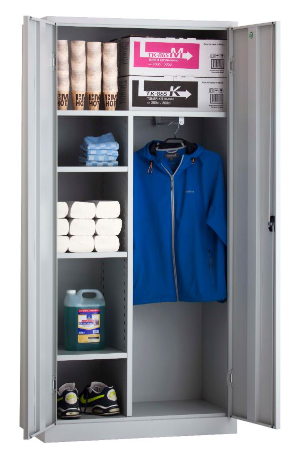 Tretal schoonmaakkast, eveneens bezemkast is een eenvoudige stalen kast, welke beschikt over hanghaken voor o.a. bezems en dweilen. De kast is voorzien van een doorlopend tussenschot, waardoor er extra legruimte ontstaat in de kast. De kast is daarnaast zeer geschikt voor schoonmaakmiddelen en aanverwante artikelen.