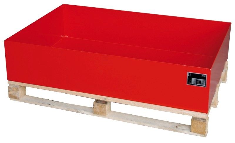 Vloeistofopvangbak 1200×800 mm zonder rooster voor 2 vaten, gelakt in resedagroen RAL 6011