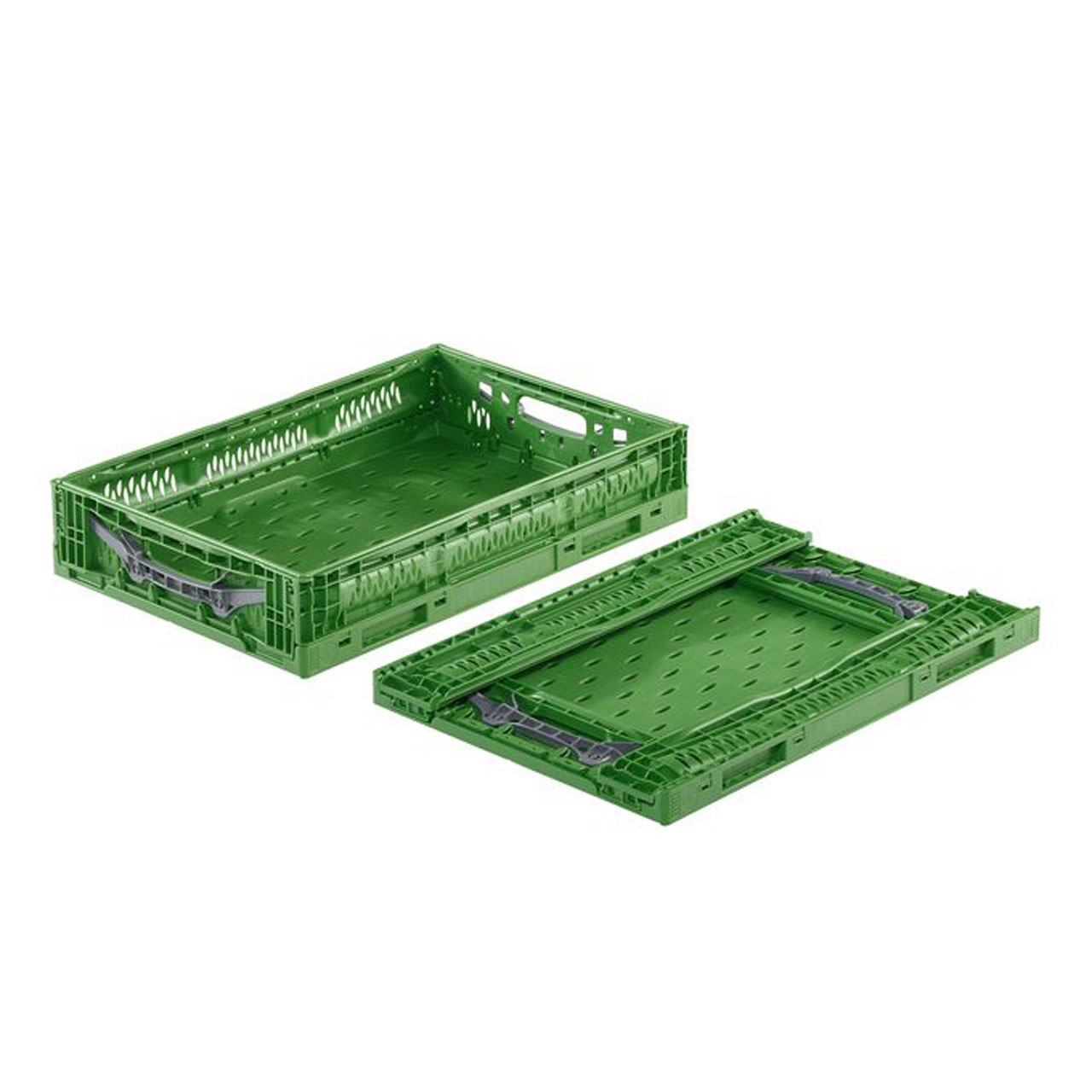 De kratten zijn eenvoudig in- en uit te klappen dankzij het unieke easy-lift-lock-systeem. De sleufperforatie in de wanden en bodem zorgt voor optimale doorkoeling en maakt het krat uitermate geschikt voor het bewaren en vervoeren van verse levensmiddelen. Voorzien van geïntegreerde etikethouders op beide korte zijden, 4 ergonomische handgrepen