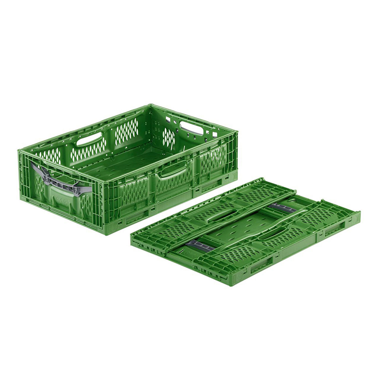 De kratten zijn eenvoudig in- en uit te klappen dankzij het unieke easy-lift-lock-systeem. De sleufperforatie in de wanden en bodem zorgt voor optimale doorkoeling en maakt het krat uitermate geschikt voor het bewaren en vervoeren van verse levensmiddelen. Voorzien van geïntegreerde etikethouders op beide korte zijden, 4 ergonomische handgrepen